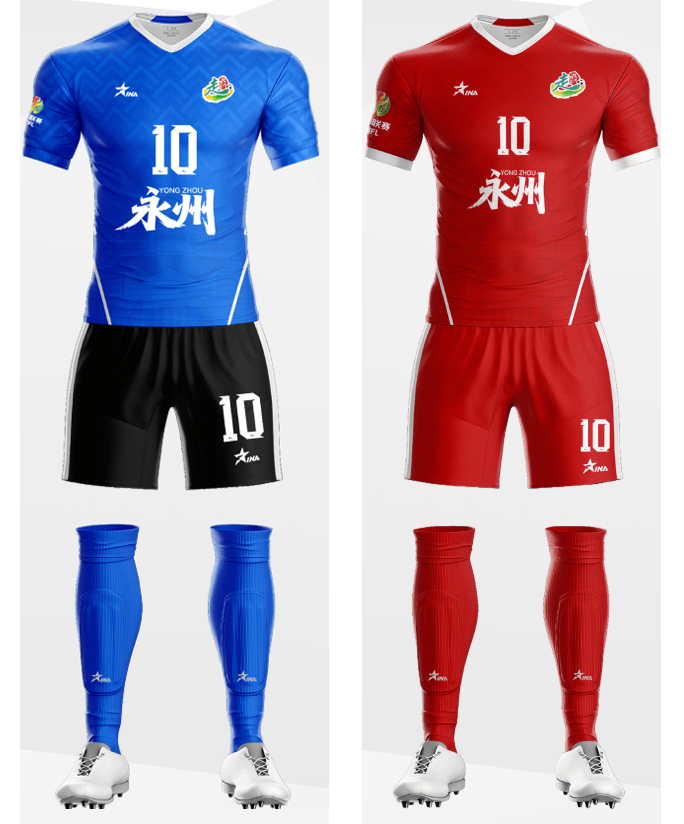 永州队队服采用蓝白配色,蓝色象征深邃沉稳,白色彰显公平竞技初心。设计融入永州红色文化及历史元素,传递永州深厚的历史底蕴与文化自信。