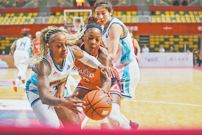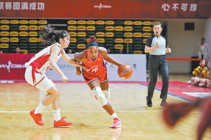 陕西榆林天泽女篮(红)主场首战浙江稠州银行女篮(白)。